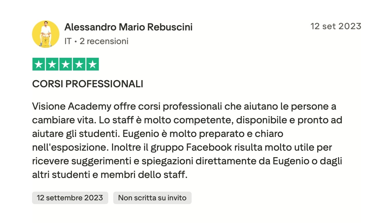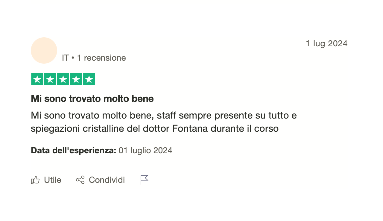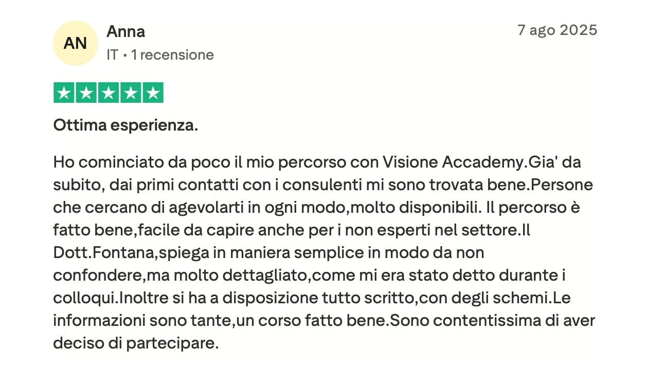 Verrai valutato direttamente dal docente Eugenio Fontana in una consulenza 1:1 pre-esame, per assicurarti di passarlo al 1° tentativo.