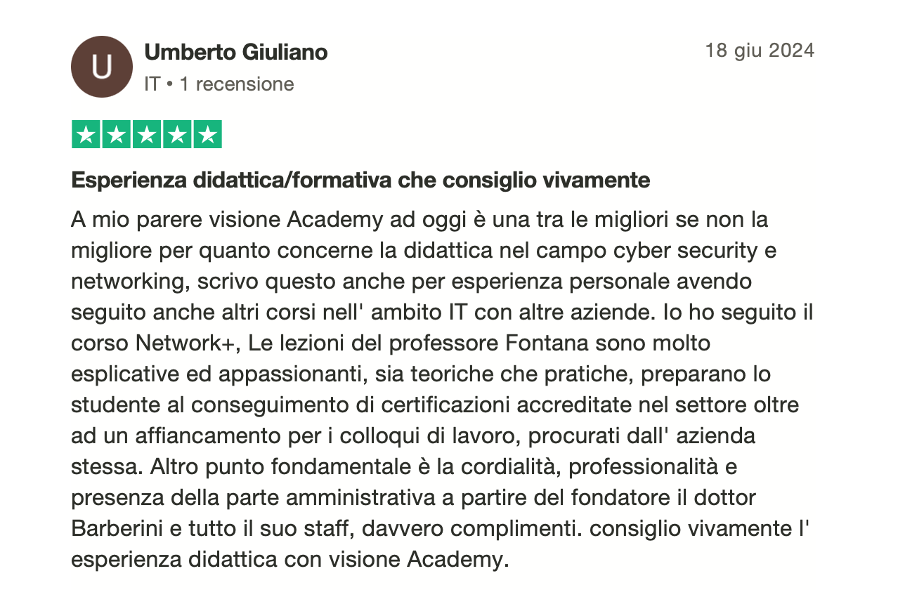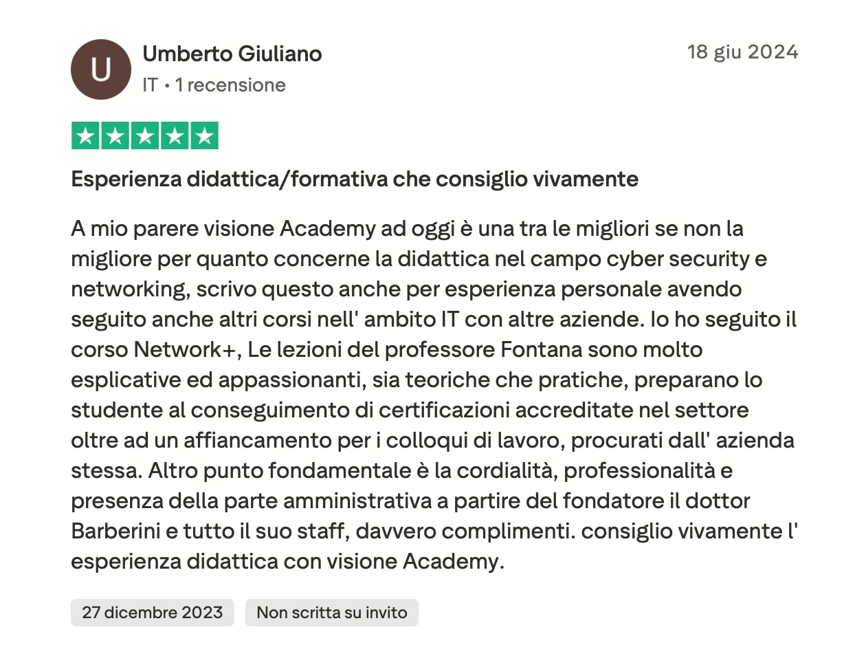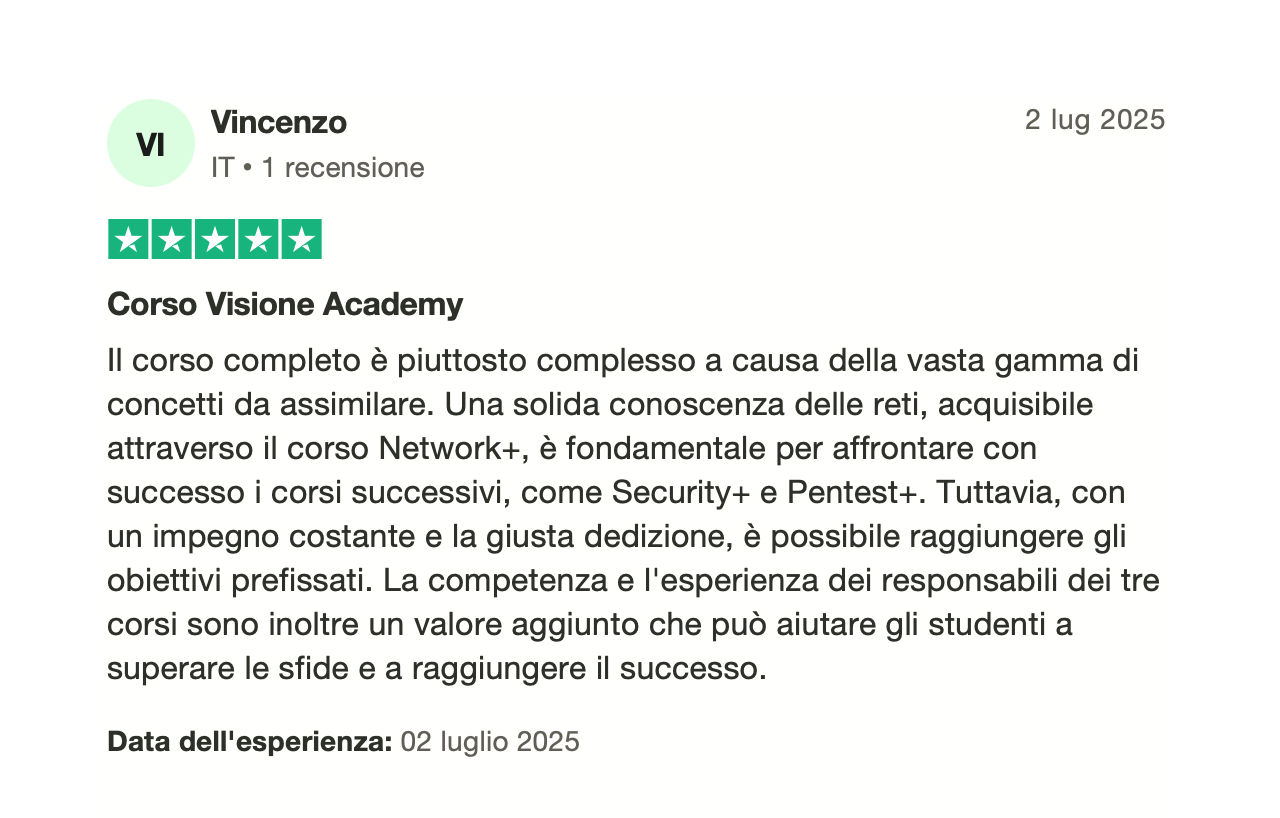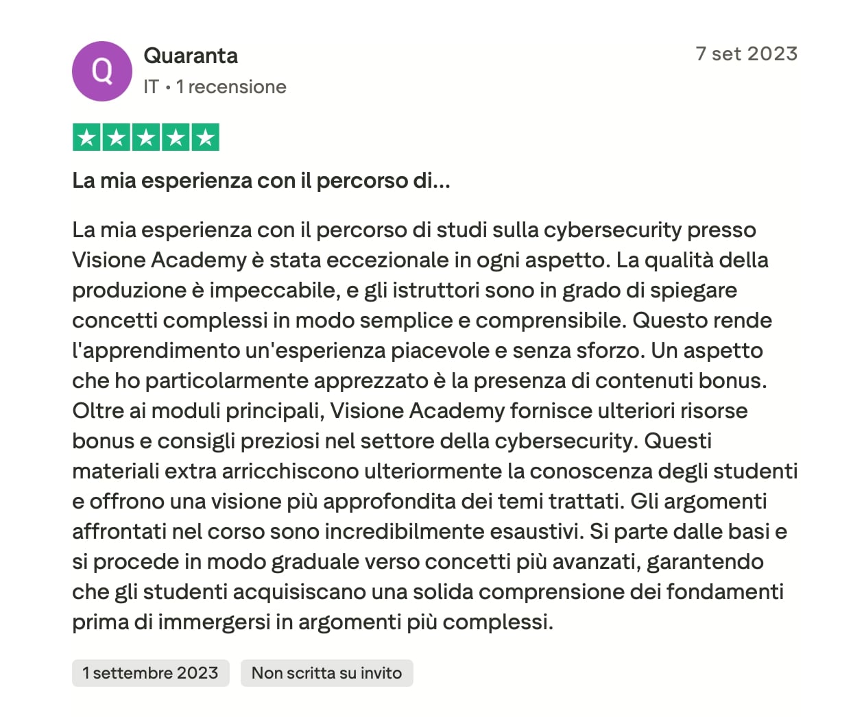 Visione Academy è la prima realtà in lingua italiana dedicata interamente alla formazione professionalizzante in cybersecurity, con centinaia di studenti formati numerosissimi casi concreti di inserimento, tutti reali.