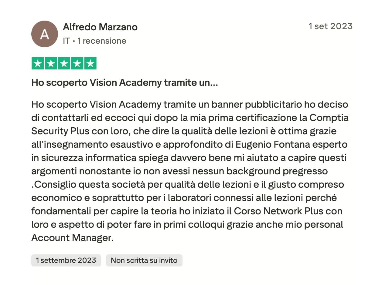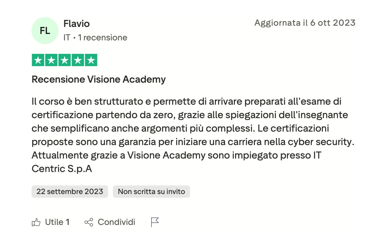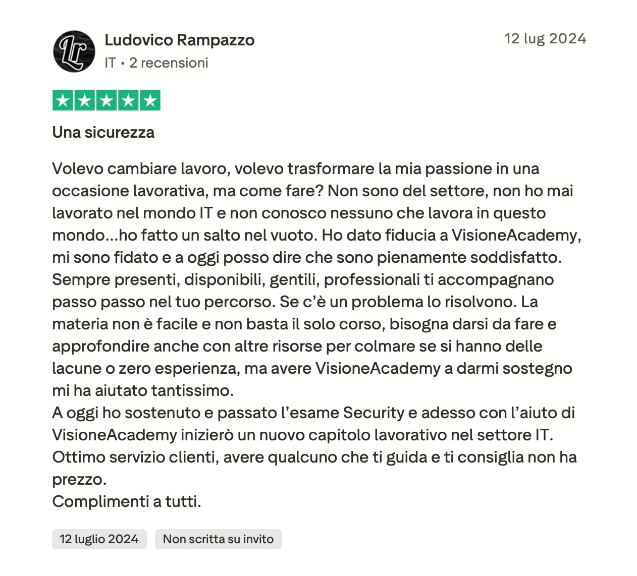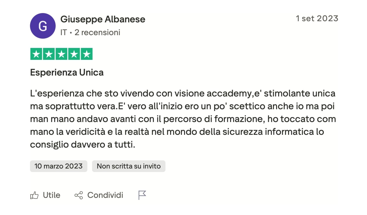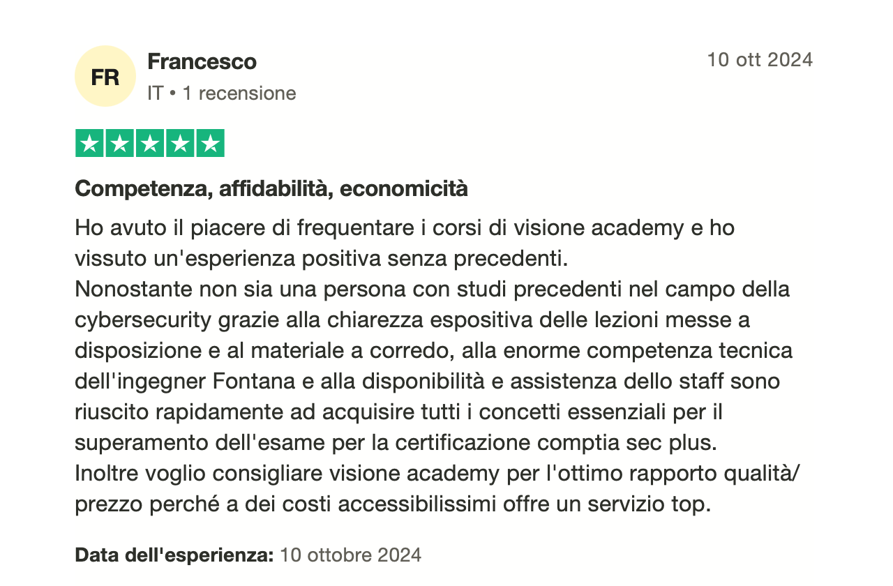 Visione Academy è la prima realtà in lingua italiana dedicata interamente alla formazione professionalizzante in cybersecurity, con centinaia di studenti formati numerosissimi casi concreti di inserimento, tutti reali.