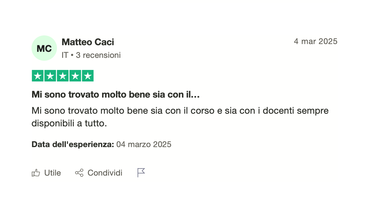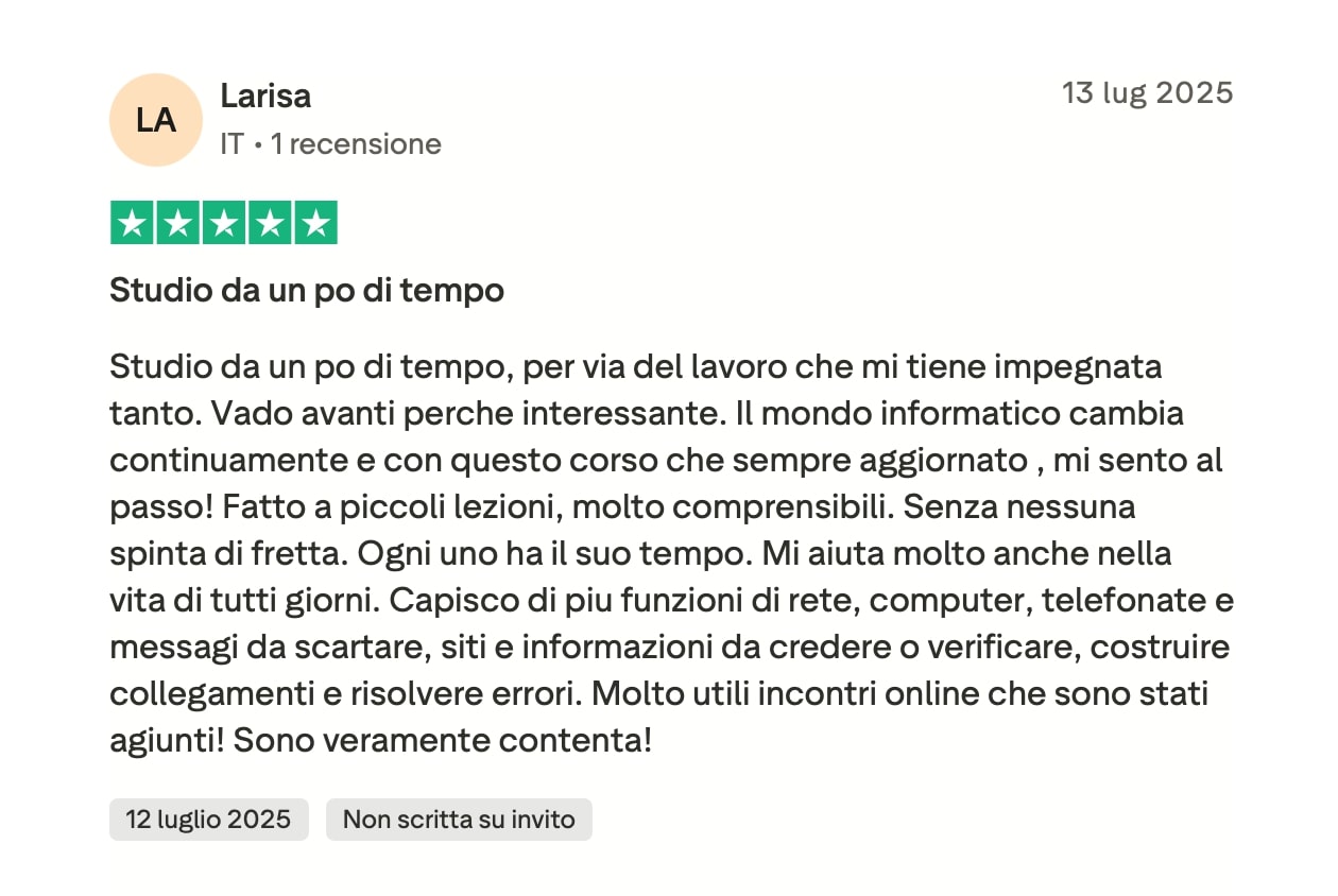 La maggior parte degli studenti si certifica in 3–6 mesi, organizzandosi in modo flessibile senza stravolgere la propria routine.