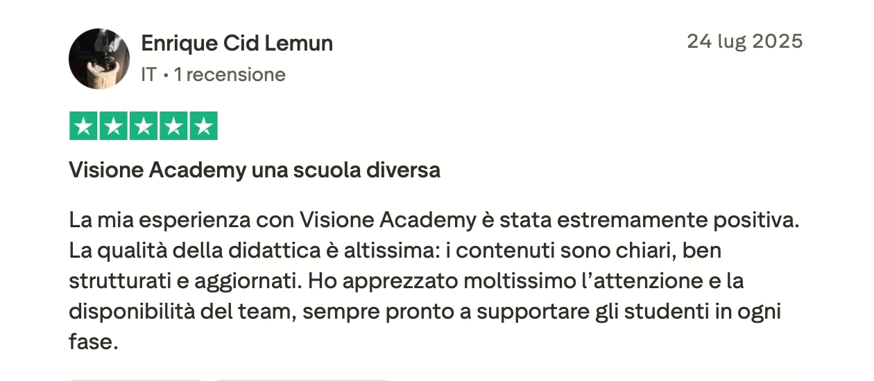 Fai carriera nell’informatica formandoti con il docente numero 1 in Italia grazie a Visione Academy, anche se parti da zero.