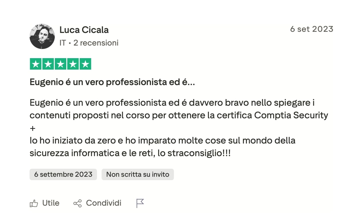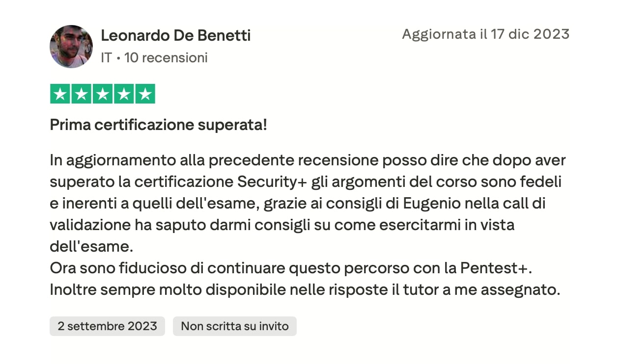 Diventa un cyber security expert, partendo da zero, studiando dove e quando vuoi grazie alle video lezioni di Eugenio Fontana, il nostro docente n°1 in Italia.