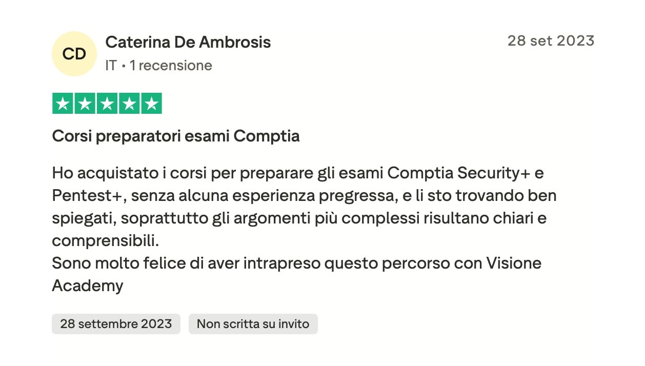 Sono riconosciute globalmente — apprezzate in Italia, in Europa e negli Stati Uniti — e la certificazione CompTIA Security+ è richiesta anche dal Dipartimento della Difesa degli Stati Uniti (DoD) per numerosi ruoli in ambito sicurezza.