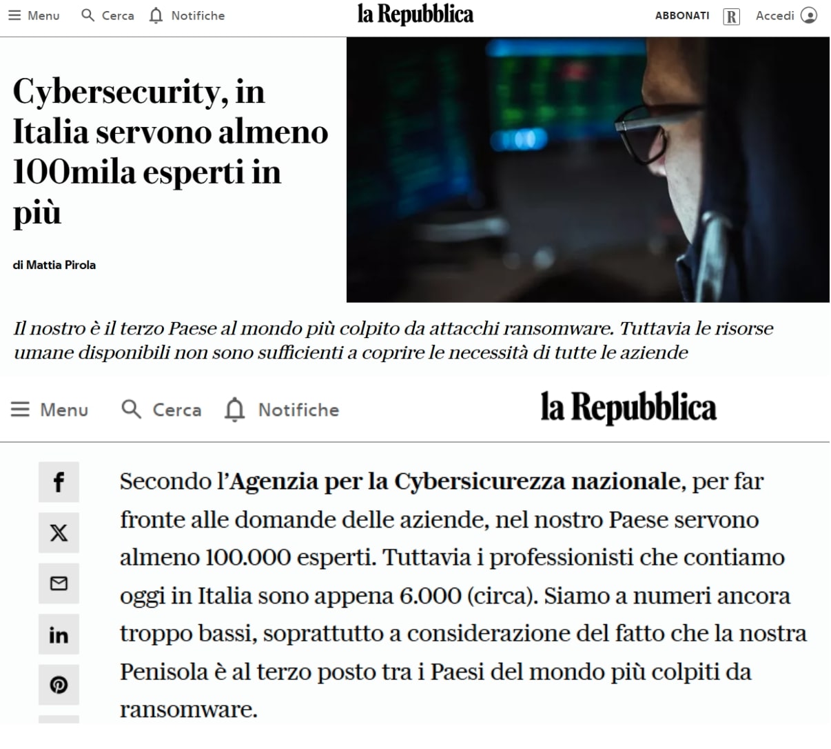 La cybersecurity oggi è uno dei pochi settori in cui le aziende faticano a trovare talenti.