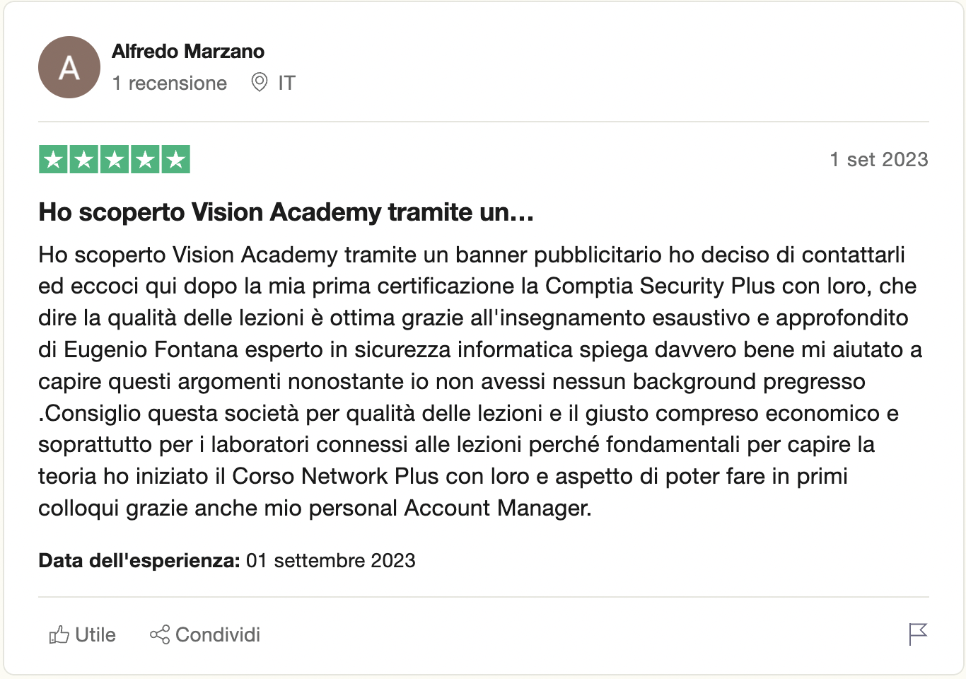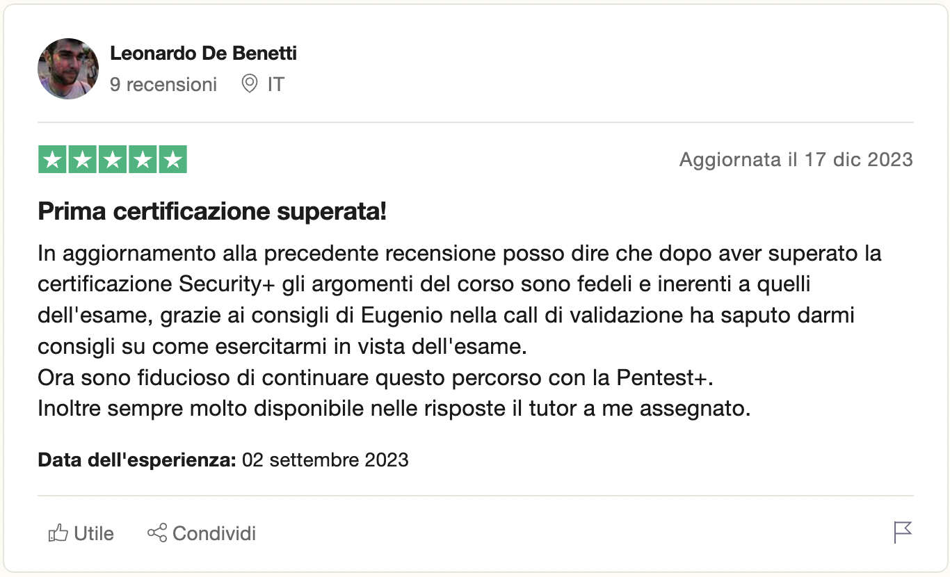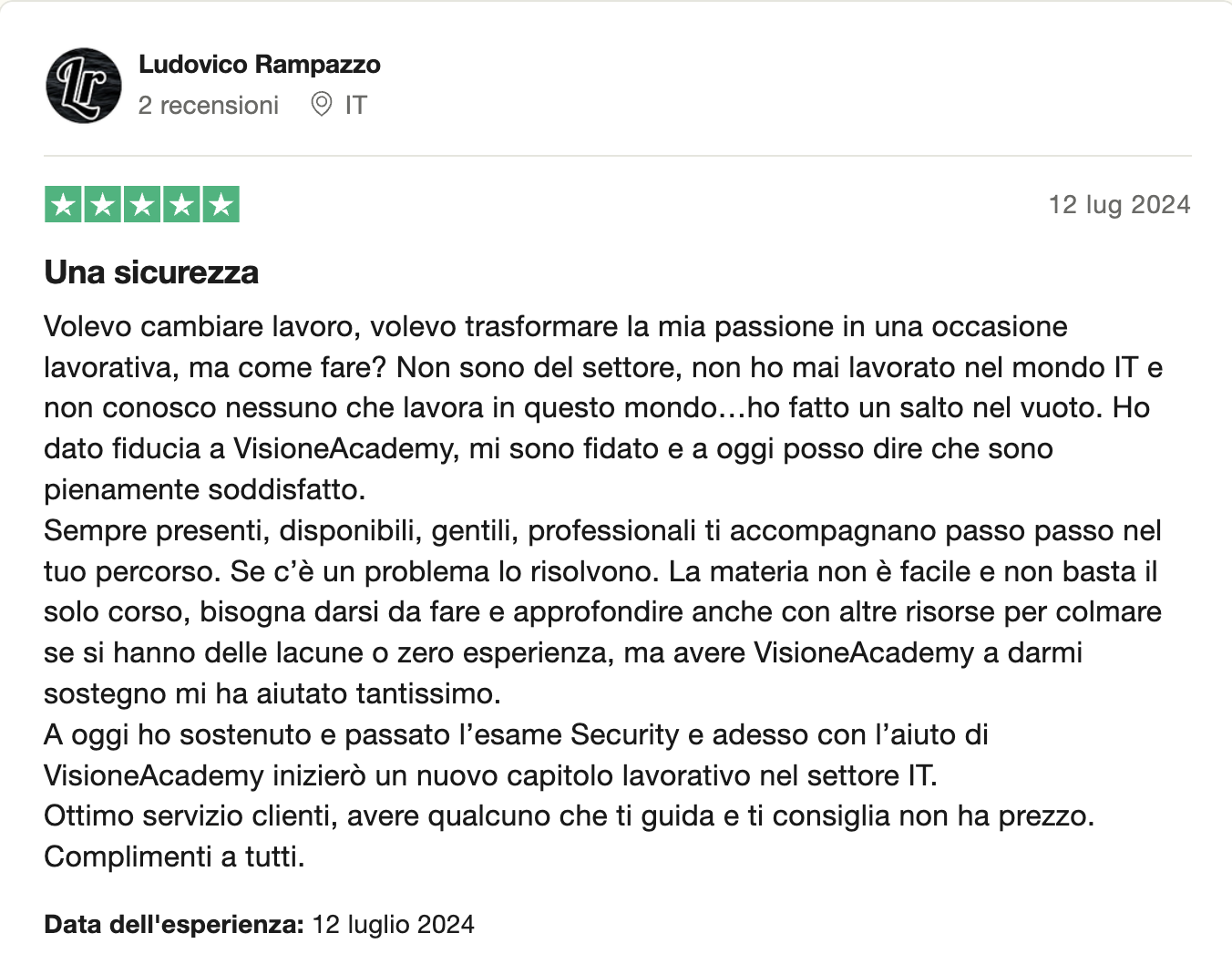 Approfitta della sua esperienza, delle competenze e del supporto di un leader riconosciuto per trasformare il tuo interesse per la cybersecurity in una carriera di successo.