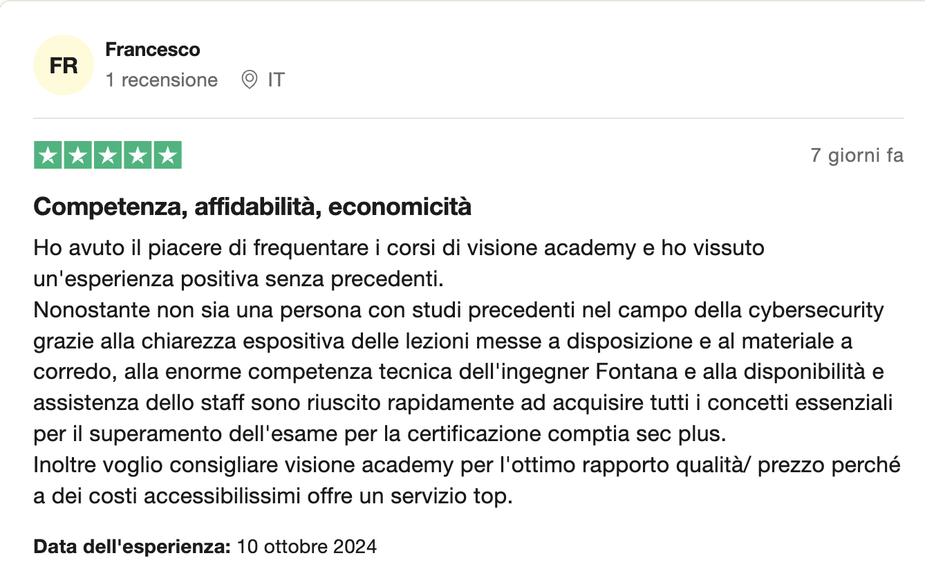 Con oltre 10 anni di esperienza nel settore della sicurezza informatica, il Dott. Fontana ha formato più di 12.000 studenti e venduto oltre 70.000 corsi in Italia, consolidando la sua reputazione come uno dei massimi esperti nel campo.