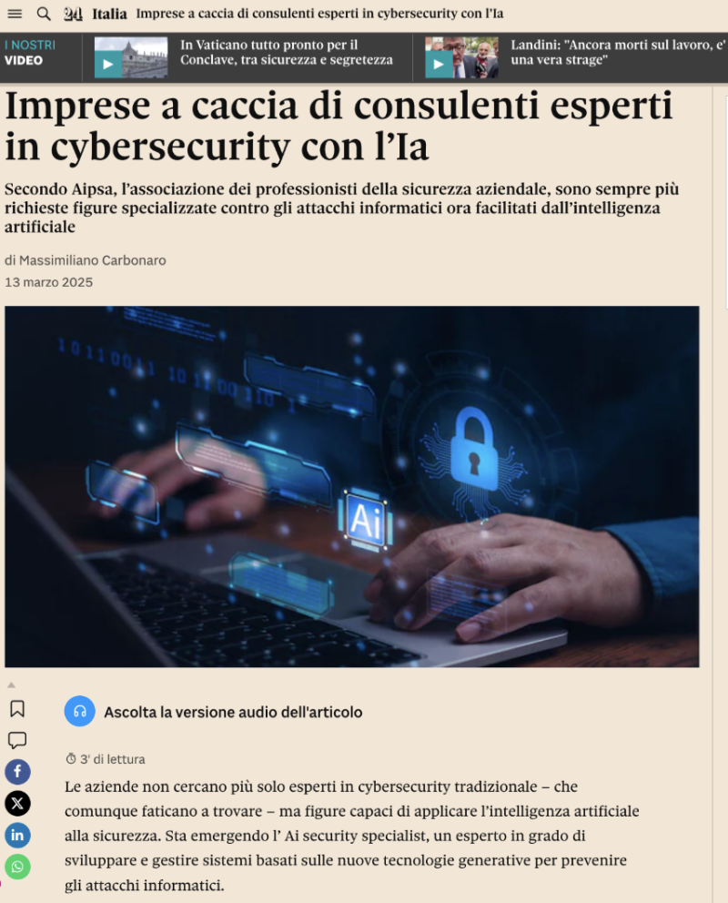 Oltre 100.000 posizioni in ambito Cyber Security risultano scoperte solo in Italia.